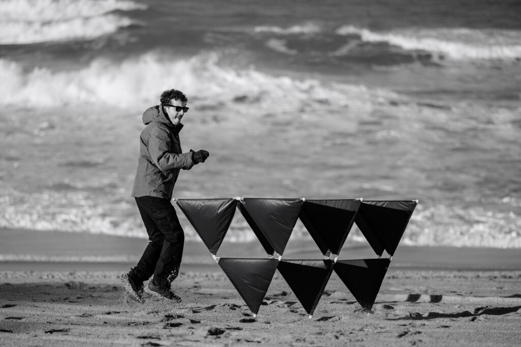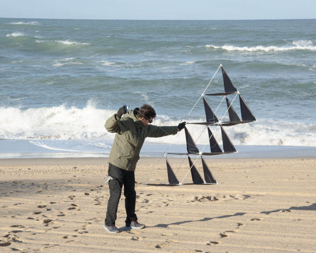 Marco: The notion of detachment clearly refers to the lifting of the “flying object.” I’ve always been drawn to the contrast between lightness and scale, and I was fully aware that making this kite actually fly on the beach was close to impossible. But that impossibility—that poetic tension—is exactly what I wanted to evoke. I’m quite happy with how it turned out.